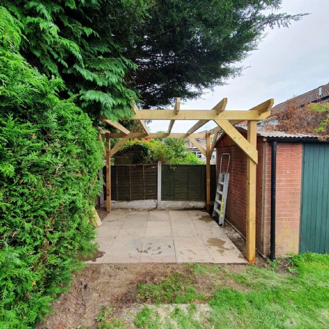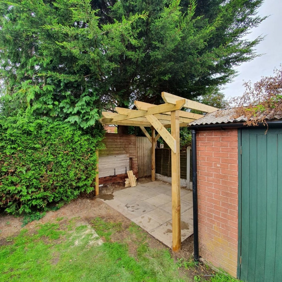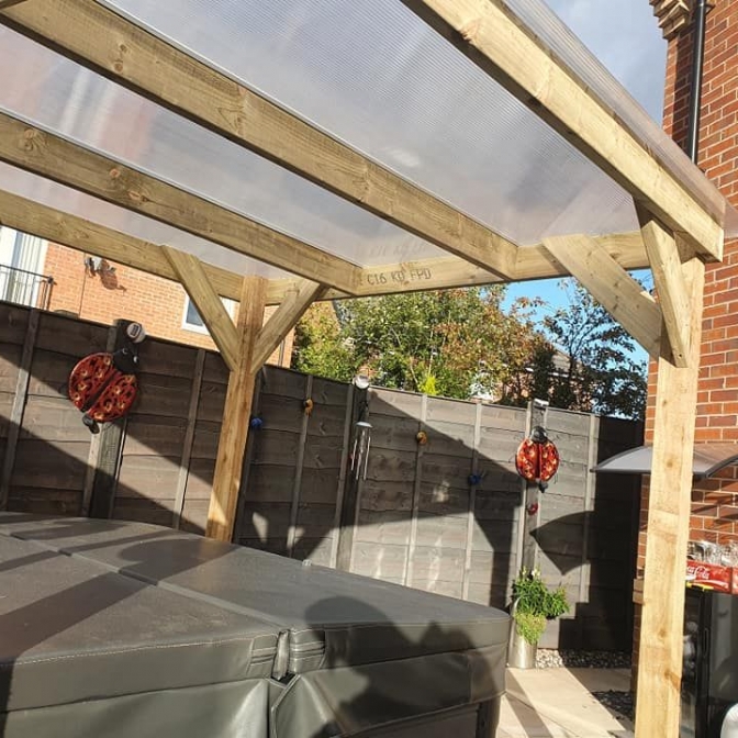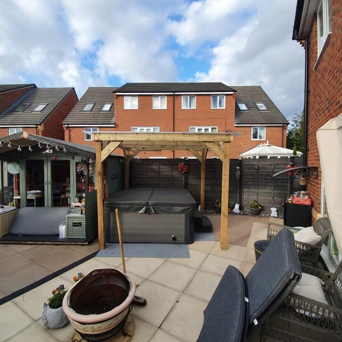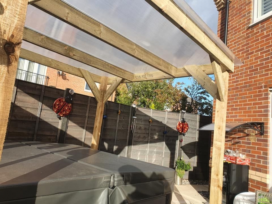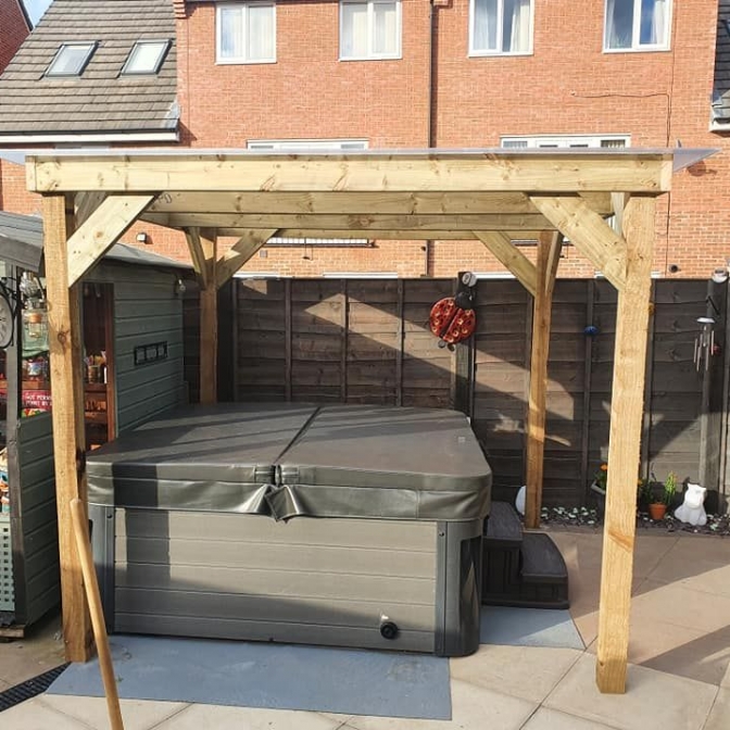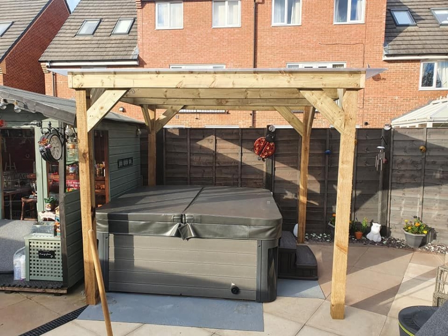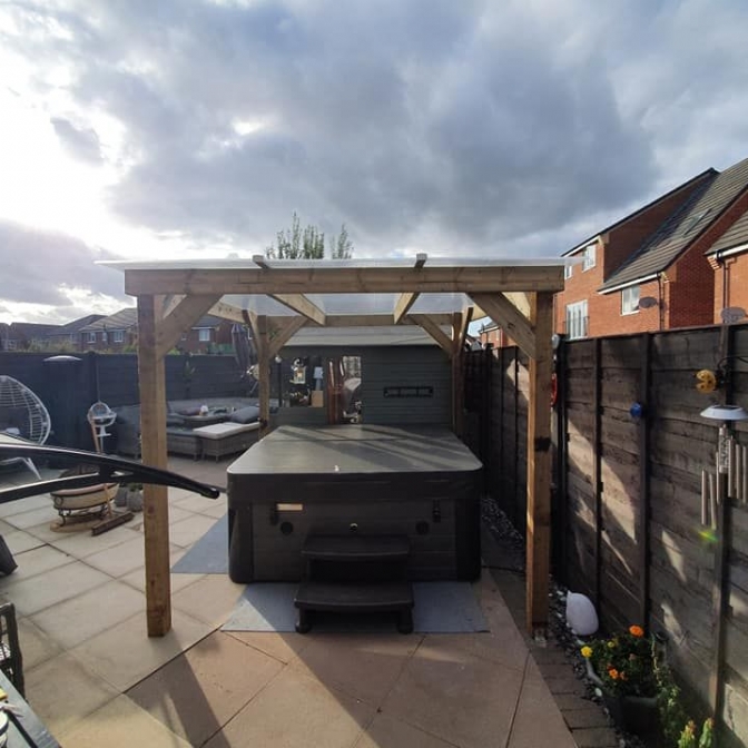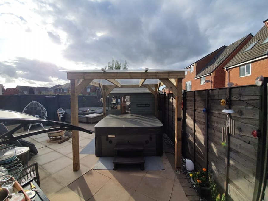 Lovely roofed pergola over hot tub done in Cadishead 9th September
