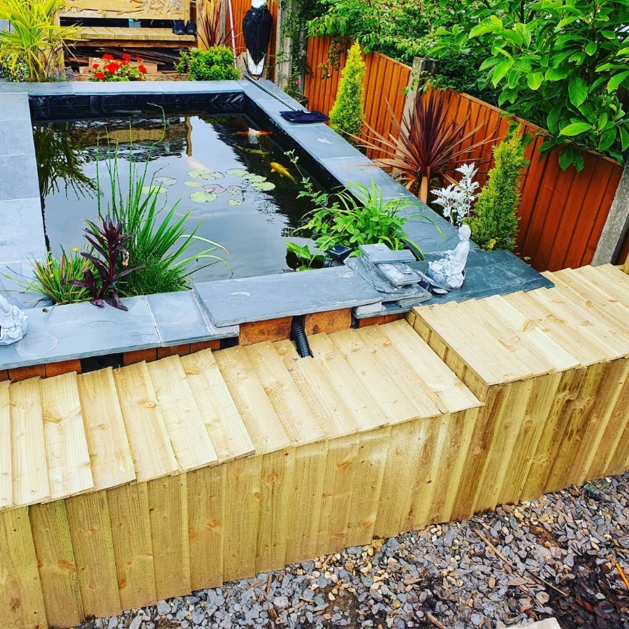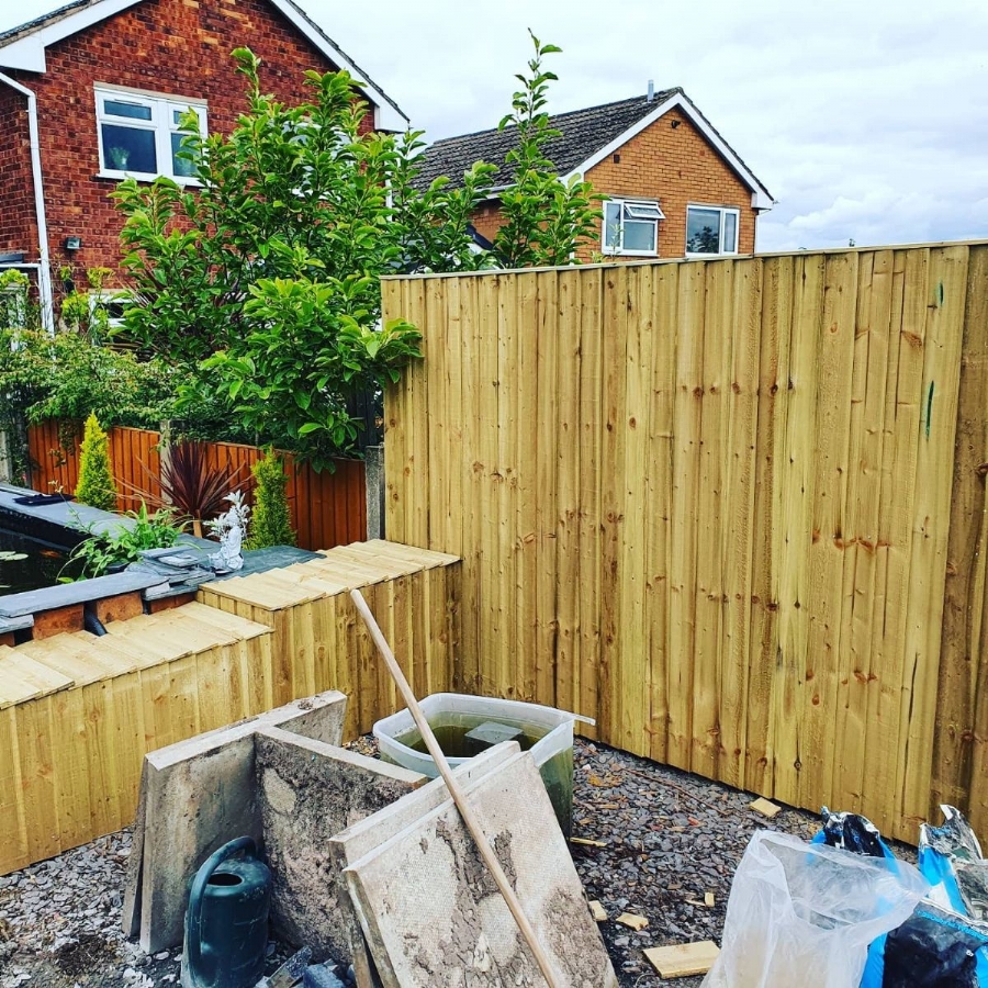 6ft feather edge 7M long with boxing in around the pumps for the pond
