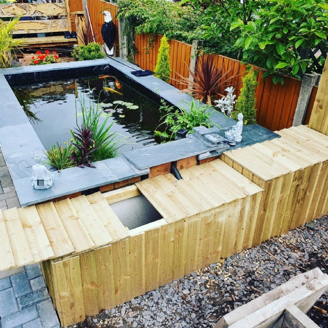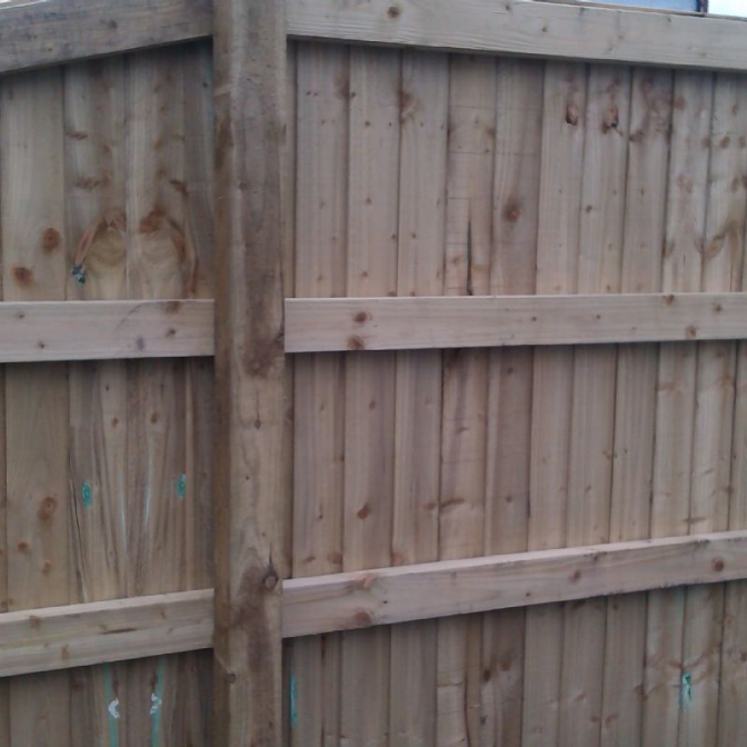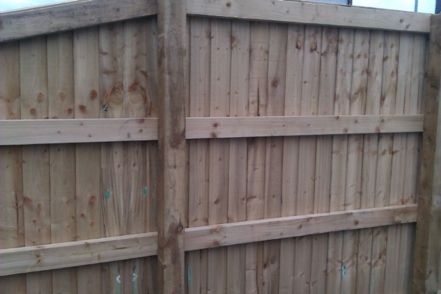 6ft feather edge 7ms long with boxing in around the pumps for the pond