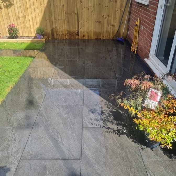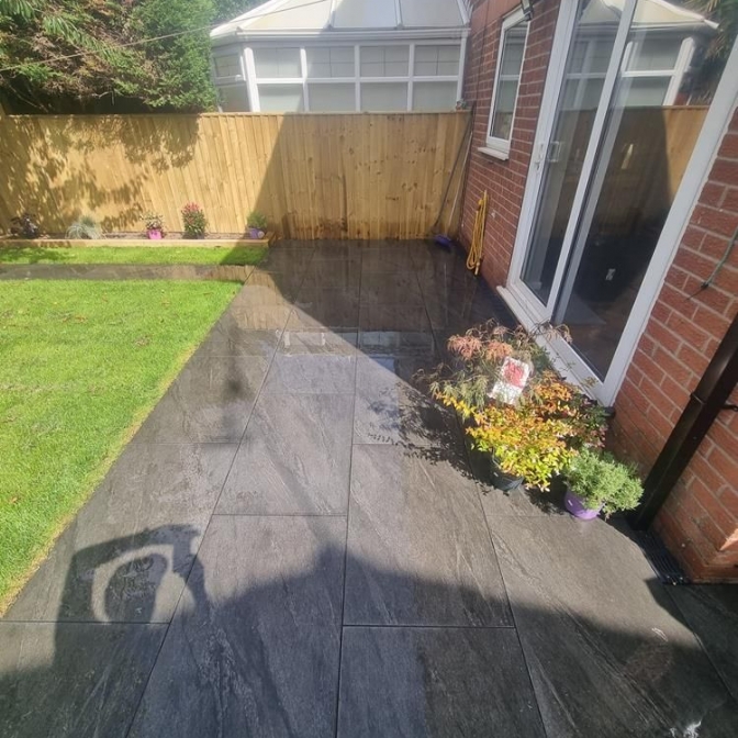 Driveway, porcelain patio, turfing, fencing, gutters facias sofits all done on the property.